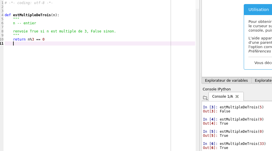 Testez ce qui suit (on définit une fonction dans l'éditeur, on appelle cette fonction dans la partie console):