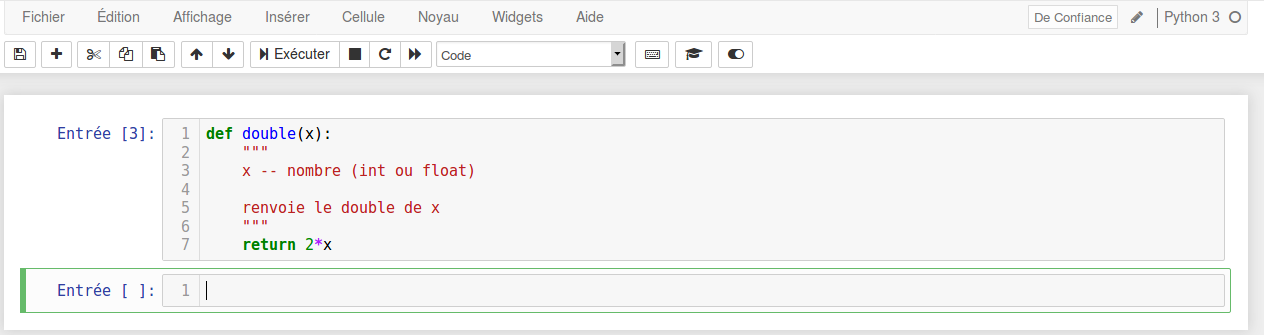 Dans la cellule suivante, vous pouvez alors tester votre fonction en entrant par exemple double(7)