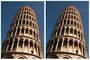 The two images of the Leaning Tower of Pisa are identical, yet one has the impression that the tower on the right leans more, as if photographed from a different angle.
