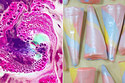 15. Stare at the colored dots on the girl’s nose in the photo above for 30 seconds. Then look at a white surface and start blinking.
